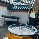 Ein Flachbildfernseher mit Satellitenkanälen und ein Fernsehen mit mehreren Kanälen in einem Ankleidebereich und einer Sitzecke gehören zur Ausstattung der Ville. Die Villa in Mýto pod Ďumbierom verfügt über ein Badezimmer mit einem Whirlpool, einer getrennten Toilette und einer Dusche. Ein Haartrockner, Toilettenartikel und Handtücher werden auch angeboten.
